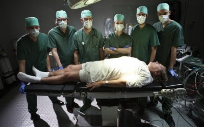 En effet, les six musiciens explorent toutes sortes de sonorités dans un bloc opératoire après avoir kidnappé un malheureux patient utilisé comme batterie ou encore dans une banque lors d'un savoureux braquage musical. Ni piano, ni guitare, ici la ville et toutes sortes d'objets  font office d'instruments de musique. Nos six hurluberlus inventent un genre musical où l'on joue avec des tuyaux, des appareils médicaux ou encore des engins de chantier. Ils nous avaient déjà initié à leur Art dans un court métrage nommé "Music for one apartment and six drummers" où on les voyait se déchaîner dans les différentes pièces d'un appartement.